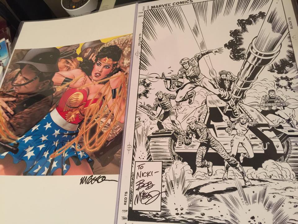 Also bought Nicki a couple prints in Artists Alley– a Wonder Woman from Michael Golden, and a G.I. Joe one from Bob McLeod. The G.I. Joe print is the cover line art to the first comic Nicki ever bought off a spinner rack as a kid. We’ll have to get Bob to sign that comic when he comes to Mid-South Con this year. Nicki got writer Larry Hama to sign it last year at RCCE2014.