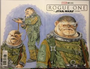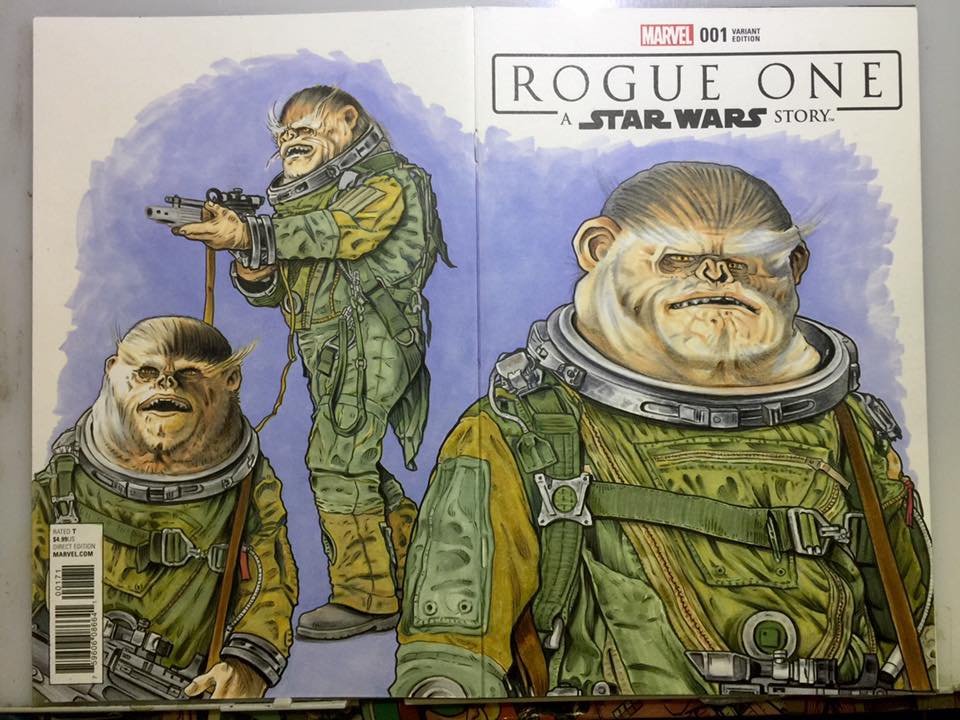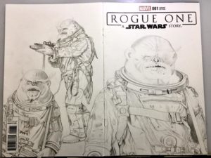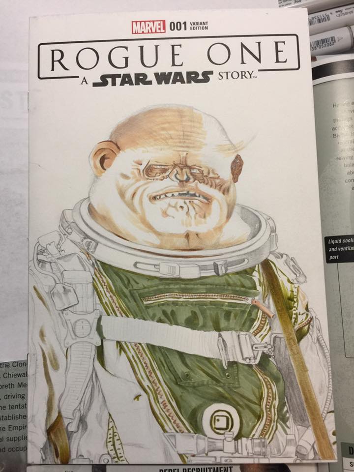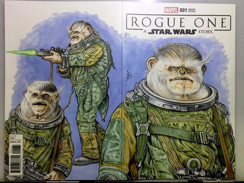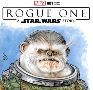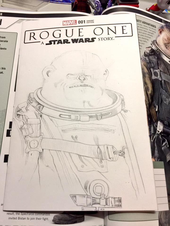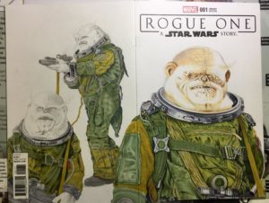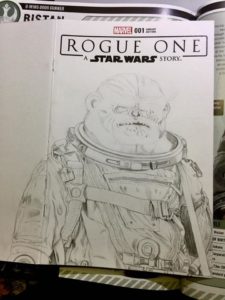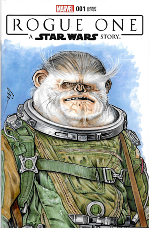 A few months ago I thought I’d celebrate May The Fourth by working on a Bistan Star Wars: Rogue One sketchcover. It too is a wraparound with Bistan in a couple different poses. I really dug him in the trailers, but really didn’t get to see him much in the final film. I love his “space monkey” look, and his cool flight suit.