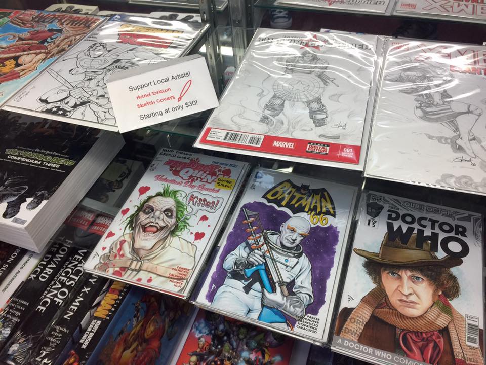 I like them because I can draw whatever I like, the surface is WAAAAAAY bigger than a sketch card, and I can take my time and not worry about hitting a deadline. I usually have a few for sale at Comic Cellar in Memphis…