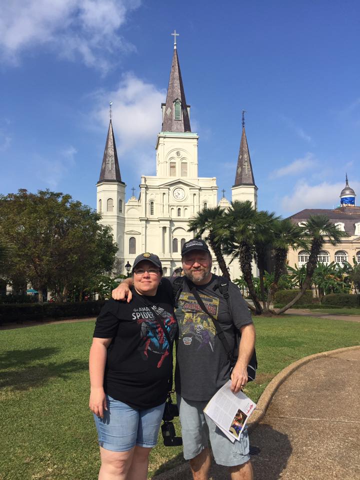 My wife Nicki and had already had a mini-vacation to New Orleans scheduled for my birthday and our anniversary, and the doctors gave us permission to get away for a few days as long as I took it easy. After the past month we really needed to get away for a bit, relax, and get our minds off the heart situation before surgery. We walked around the French Quarter a lot, visited some shops and art galleries, ate at a few restaurants, and did the WWII Museum and Mardi Gras World tours (I’ll post Have Geek Will Travel blogs on those). It was a nice break from all the health craziness we’d been going through lately, and we got to spend some fun time together before I would be incapacitated for a bit. Nicki’s been great, and I can honestly say that I wouldn’t still be here without her. As an artist and a longtime bachelor I didn’t have the healthiest lifestyle. She helped me change my diet, and kicked me in the pants until I mad my first doctor’s appointment. We’ve gotten my blood pressure back to normal, blood sugar waaaaay down, and I’ve lost some weight. Now we just have to deal with this curve ball we’ve been thrown.