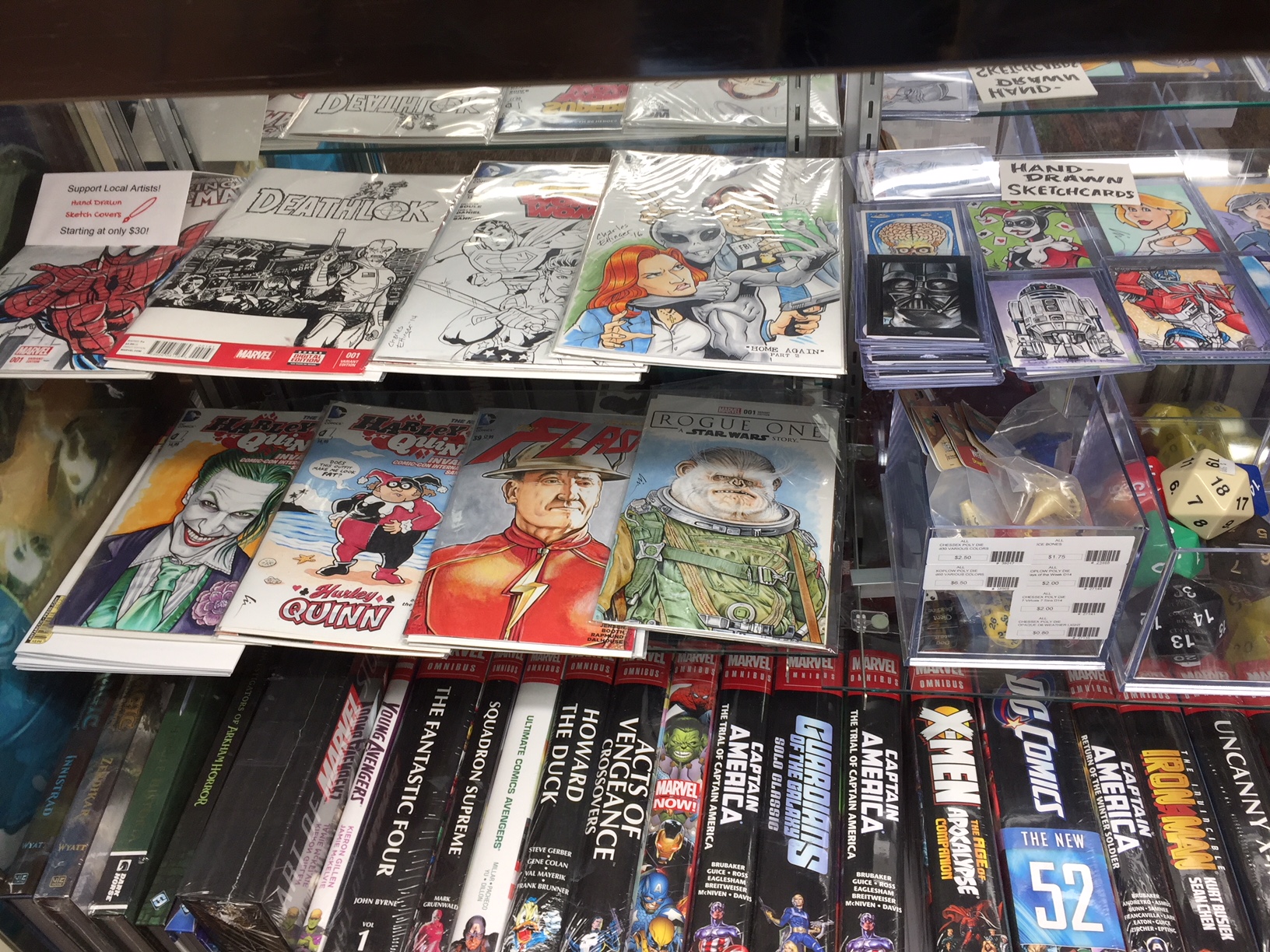 I have special ordered a lot of blanks from Jason at Comic Cellar (which is now called “The Cellar“). I’ve got many of my finished sketchcovers on sale there, along with some sketchcards- including some of my artist returns from licensed projects. I’ll be doing a Have Geek Will Travel blog post on each of those comic shops I mentioned, plus some that I visited in New Orleans back before my heart surgery.