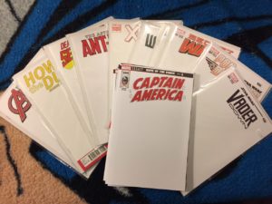 This weekend I picked up some more sketchcovers at Comics and Collectibles in Memphis, TN. They had a lot of Marvel titles to choose from including a lot of Avengers, X-Men, and Star Wars books. They were having a New Year’s sale so I got 20% off each of them (except Captain America, which was a new issue). I spent part of this afternoon reorganizing my sketchcovers and putting them in my new Batman and Harley Quinn comic short boxes. The new decorated comic boxes look much better sitting in my Batcave than just the plain white ones did. Got the printed ones at Comics and Collectibles, Comic Cellar, and Rick’s Comic City. Oh, I saw sketchcover blanks on the shelves at Rick’s Comic City when I was in Nashville a few weeks ago.