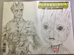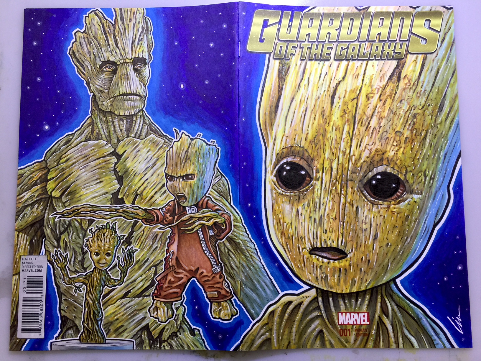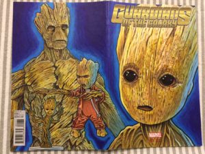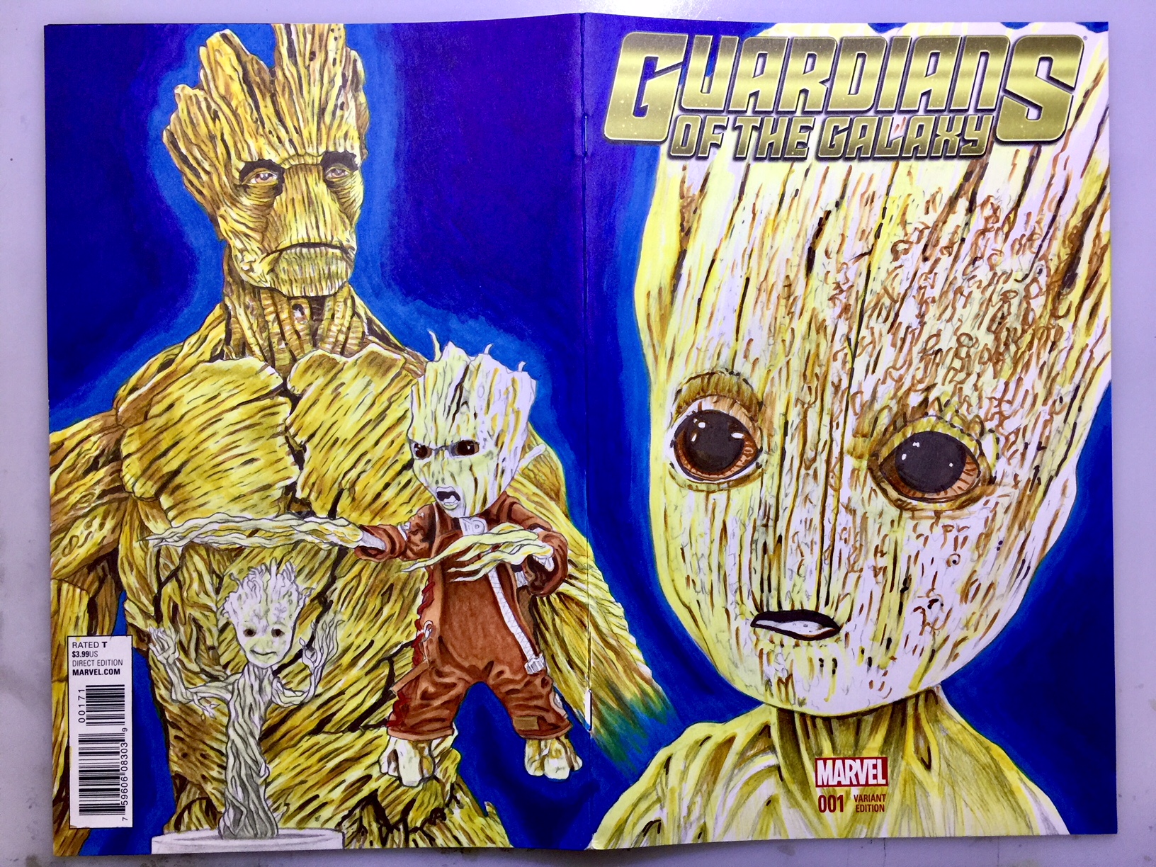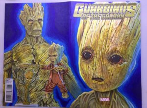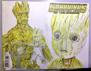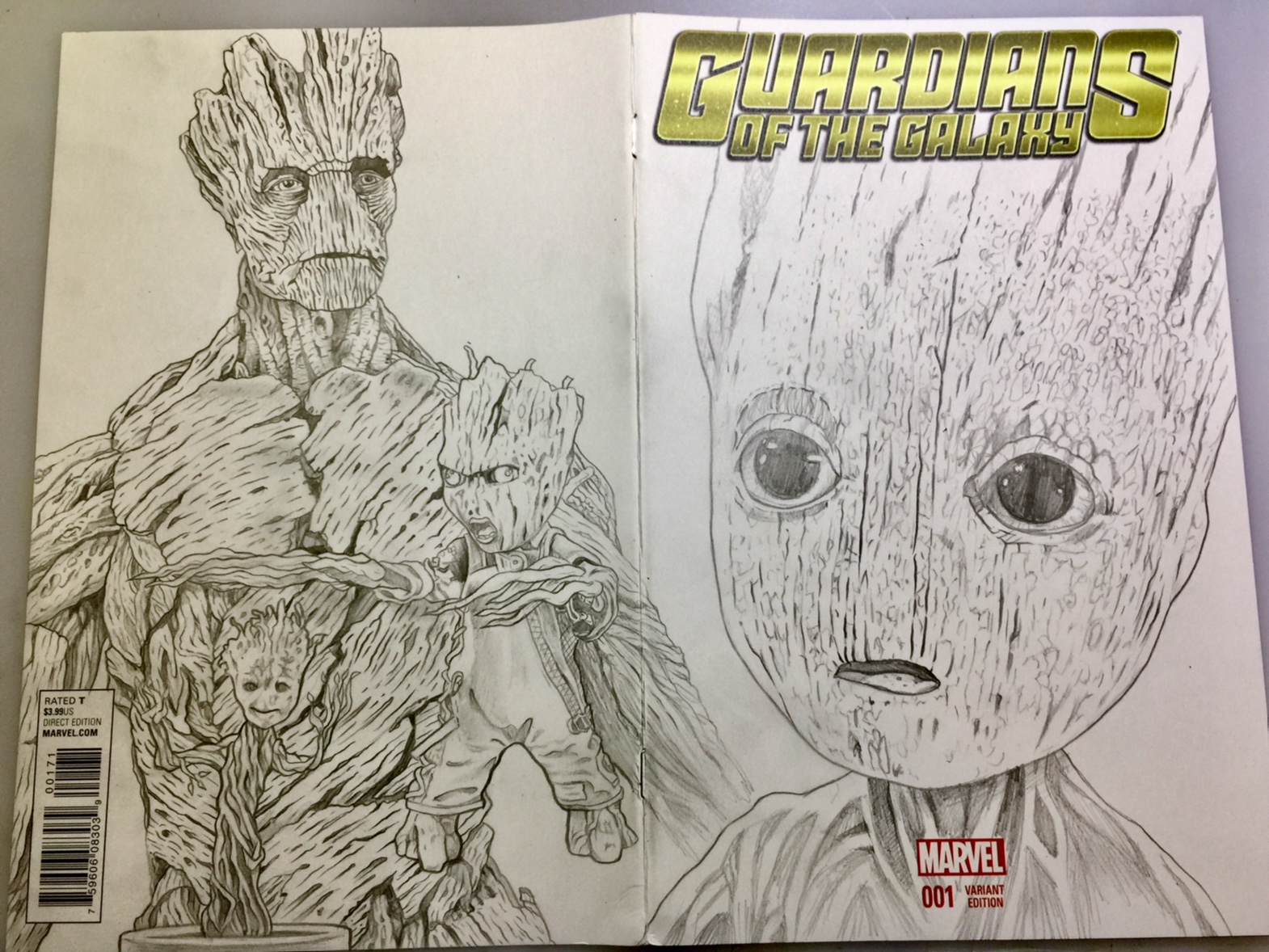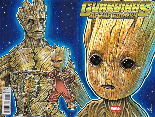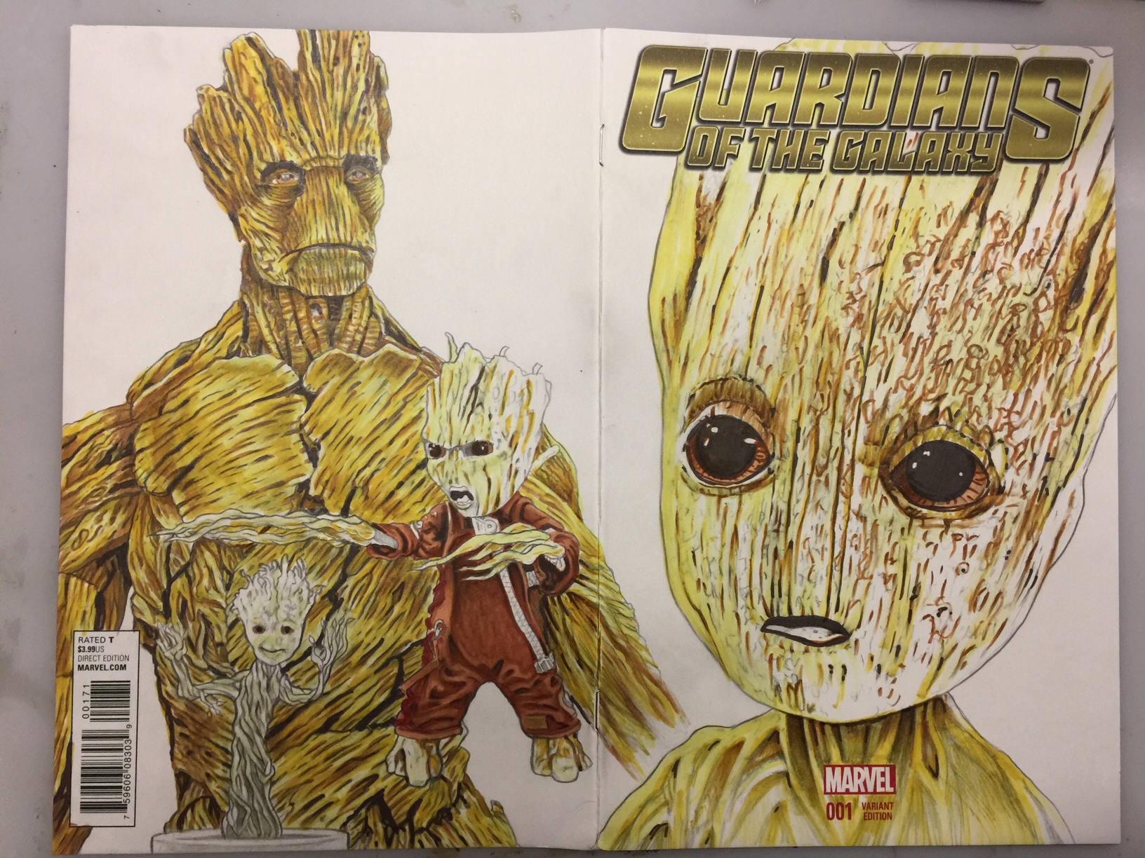 I thought I’d share with you what I finished today- my latest sketchcover…a “Guardians of the Galaxy” comic featuring GROOT!