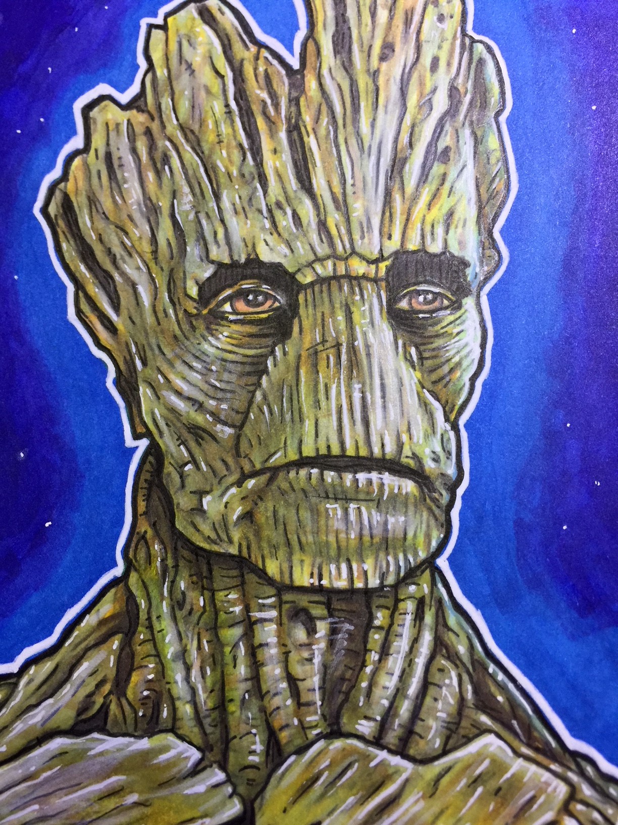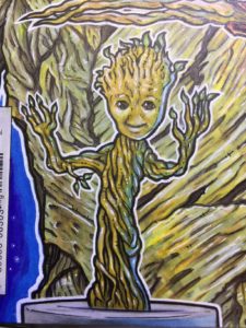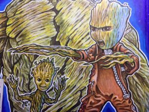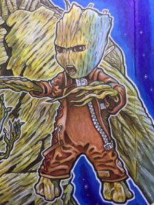 I had a lot of fun working on it, but I will say that once I started drawing all the details on the four Groots I immediately regretted starting on this one…I didn’t think I’d ever get done!