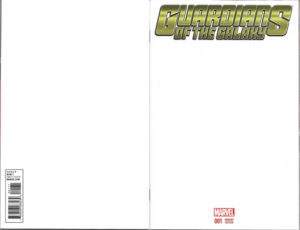 For those of you who are not familiar with what a sketchcover is, they are a regular comic book with a blank “variant” cover made to draw on. The cover usually just has the masthead logo, issue number, and bar-code on it, the rest is a Bristol type of paper. Sometimes they are blank on just the front side, and sometimes they are blank on the front and back which allows artists to do a wrap-around design if they’d like. That’s what I did for this GOTG sketchcover.
