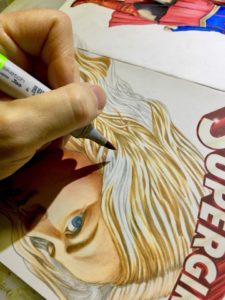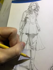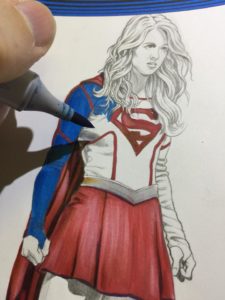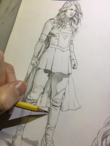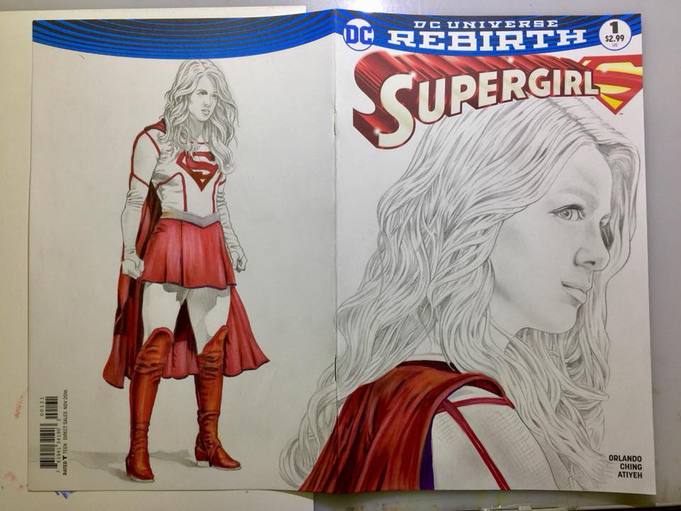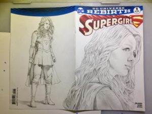 My wife Nicki and I enjoy watching the CW’s Supergirl TV show together on Monday nights. She’s a big fan of the character and loves the show. She really geeks out when they throw in some Easter Eggs for the fans, and always loves to not only see great action, but great character moments- especially with the Danvers sisters. The other day I asked my wife what sketchcover should I do next. She walked out of the Batcave and a few minutes later dropped a Supergirl blank cover on my lap..! She even brought me a thumb-drive with reference photos. I got the hint. 😉