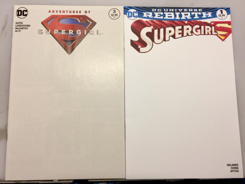 Not all sketchcovers are created equal, and you might be able to tell the difference in these two Supergirl sketchcovers just by looking at them. The one on the left’s cover has a thinner glossy/slick paper stock, and the one on the right has a thicker matte paper stock. I prefer the one on the right, and it’s just like the one Nicki gave me to draw her Supergirl cover on.
