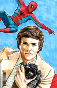 I’ve been a Spider-Man fan since the early-mid ’70s. The first comic I remember reading was a “Marvel Team-Up” issue featuring Spider-Man and the X-Men. The first comic I ever bought was a copy of “The Amazing Spider-Man” (that’s me with it and writer Len Wein). I remember wearing a plastic Spider-Man costume and mask and having “web-shooter” wrist dart guns. As much of a Batman fan as I am, at one time Spidey was the comics king in my world. I had the POWER records, MEGO toys, watched him on “The Electric Company“, the ’60s cartoon, and loved the live action “The Amazing Spider-Man” TV series starring Nicholas Hammond as ol’ “Web-head“.