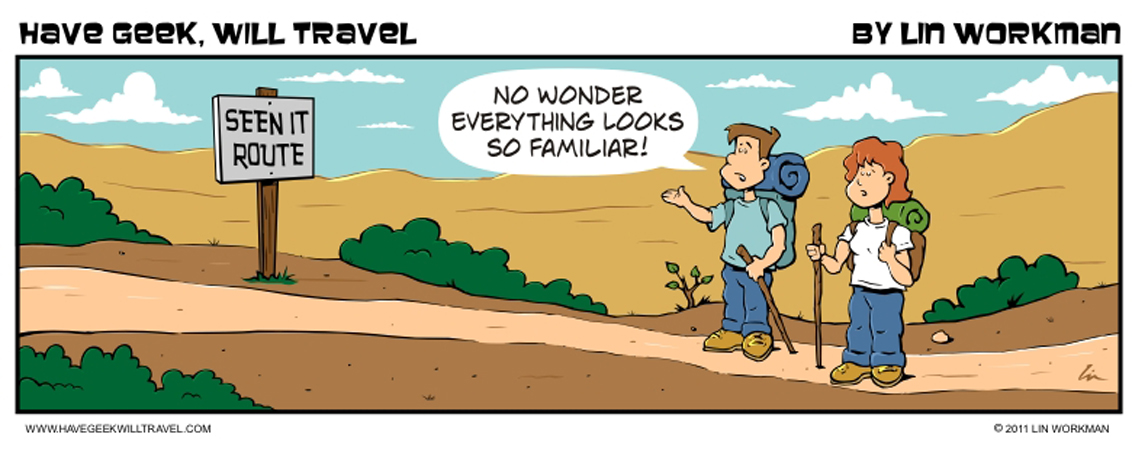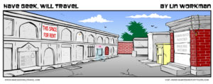 Some of you may know that I do a geek travel blog and web comic cartoons. For those of you who don’t, here’s a bit of info on it. I started it on August 18, 2011 as an offshoot of this website and my long-gone “Comic Whore” site (where I did a lot of advice on doing conventions, self-promoting, etc.)