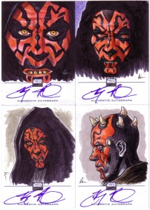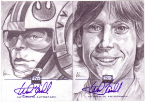 I’ve done several “sketchograph” cards that are sketchcards that the celebrity playing the character has signed, too. It was really hard to send the Carrie Fisher and Mark Hammill cards back..!