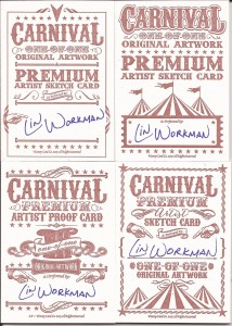 The artists that work on each set get to keep what are known as “artists returns” or “artist proofs“. The number of how many additional cards the artists get varies from company to company, but usually is in relation to how many cards they draw for the set- example: draw 100 cards and get 6 additional returns, plus 3 additional if all of your cards are in color. It has really varied for me over the years, but the more I did them the less cards I had to draw went down and my number of returns went up. Sometimes we also get a box of the cards sent back with our returned cards.