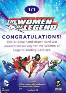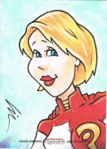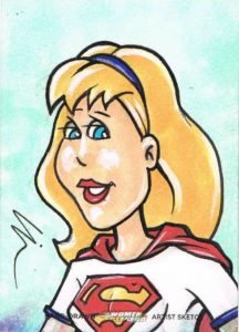 “This is a Supergirl sketch card by Lin Workman, from the Cryptozoic DC Comics: The Women of Legend trading card set. I already have a Power Girl sketch done by him for this set, depicting her in her short-lived New 52 uniform. I grabbed this one on eBay. I am not particularly a Supergirl fan, but I recognized Workman’s art style and signature and the price was right, so I jumped on it. I like the sketch cards I’ve seen from him, and I was happy to add this one to my collection for the price of a few packs of cards.”