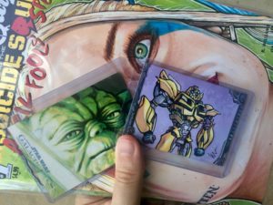 Before I go any further, some of you may not know exactly what a “sketchcard” is– and that’s okay. Many people aren’t sure, or even know that such thing exists- much less that they are a collectible thing to buy, sell, or trade. I have to explain them from time to time and they are a pretty simple but collectible pieces of unique art that can range in details and price.