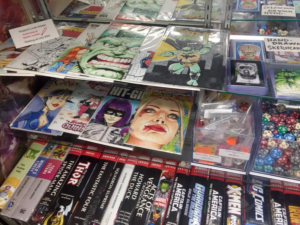 I took all of my art (sketchcards, sketchcovers, paintings) off my website and sell a few of them through a local comic/card store (The Cellar) now. They’ve been moving well there, and I don’t have to worry about dealing with the USPS. 😉