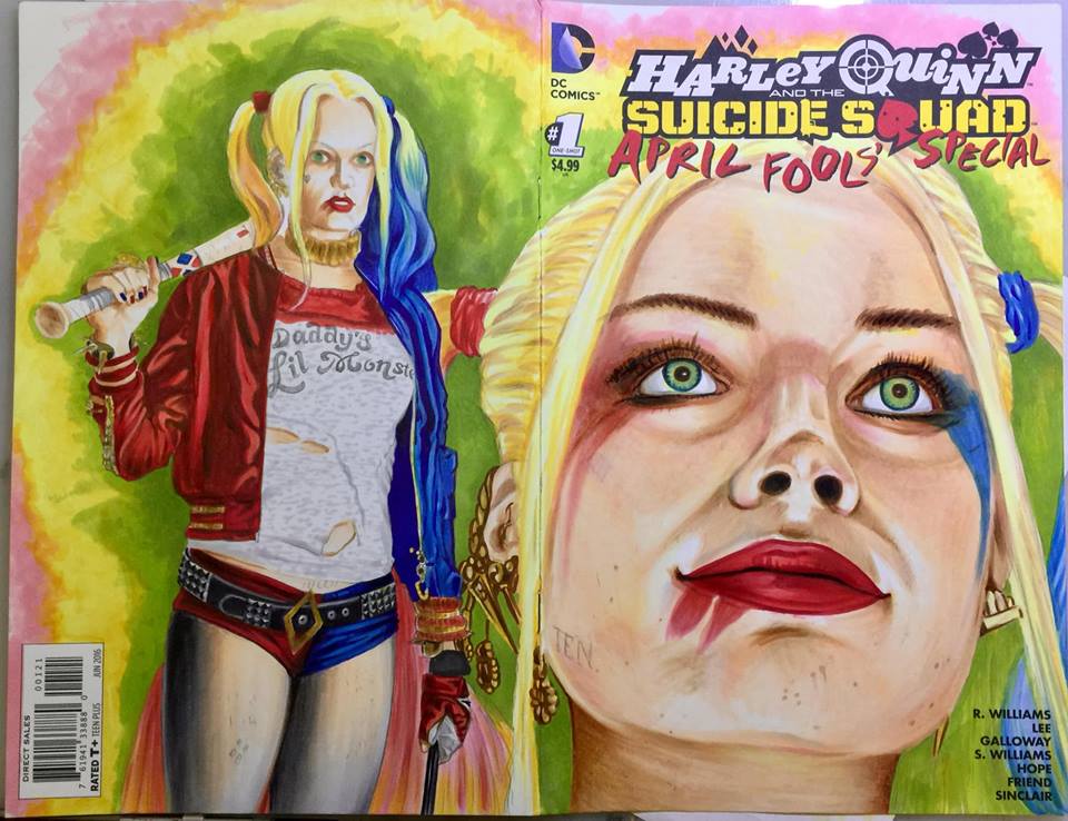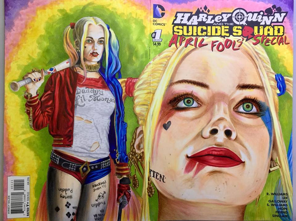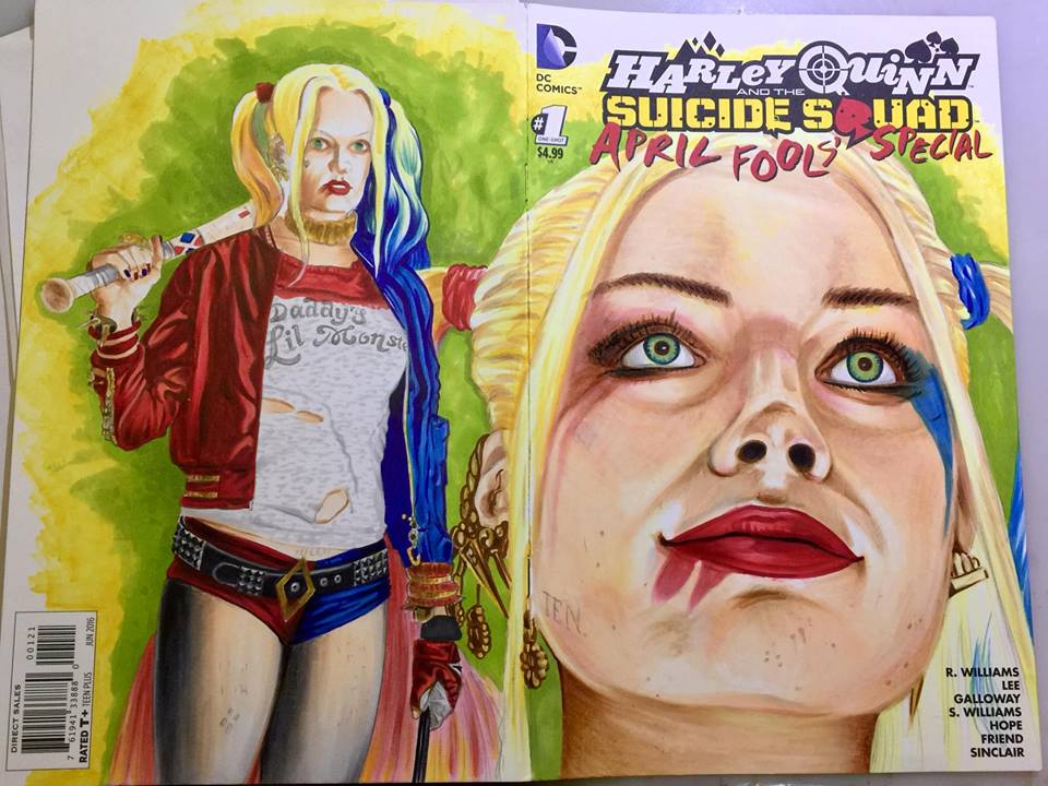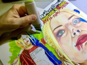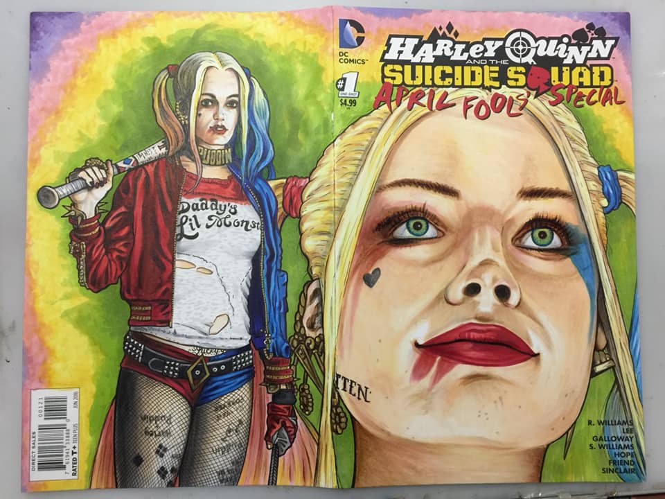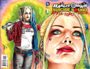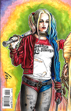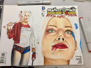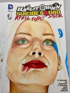 Up first this time is my Harley Quinn sketchcover. This is the Margot Robbie live action “Suicide Squad” Harley. I’m a HUGE Harley Quinn fan, and have got a few Harley statues and figures in my collection.
