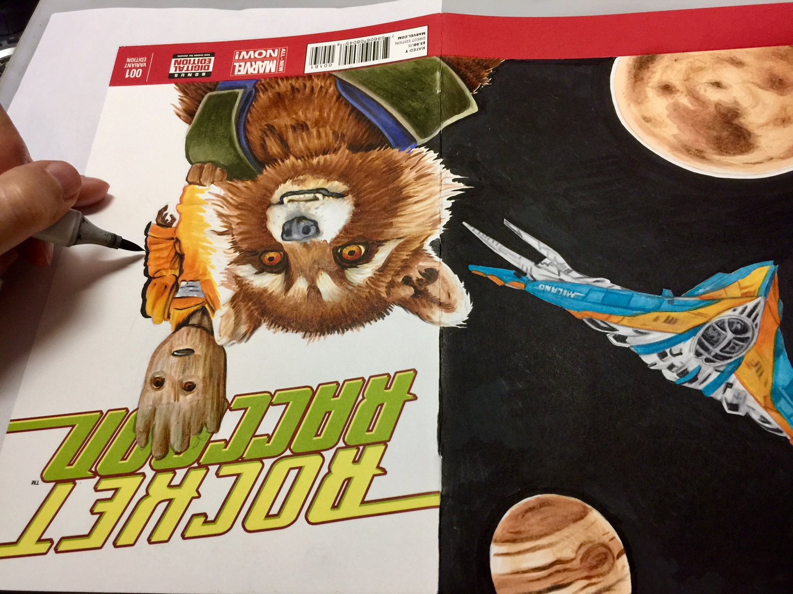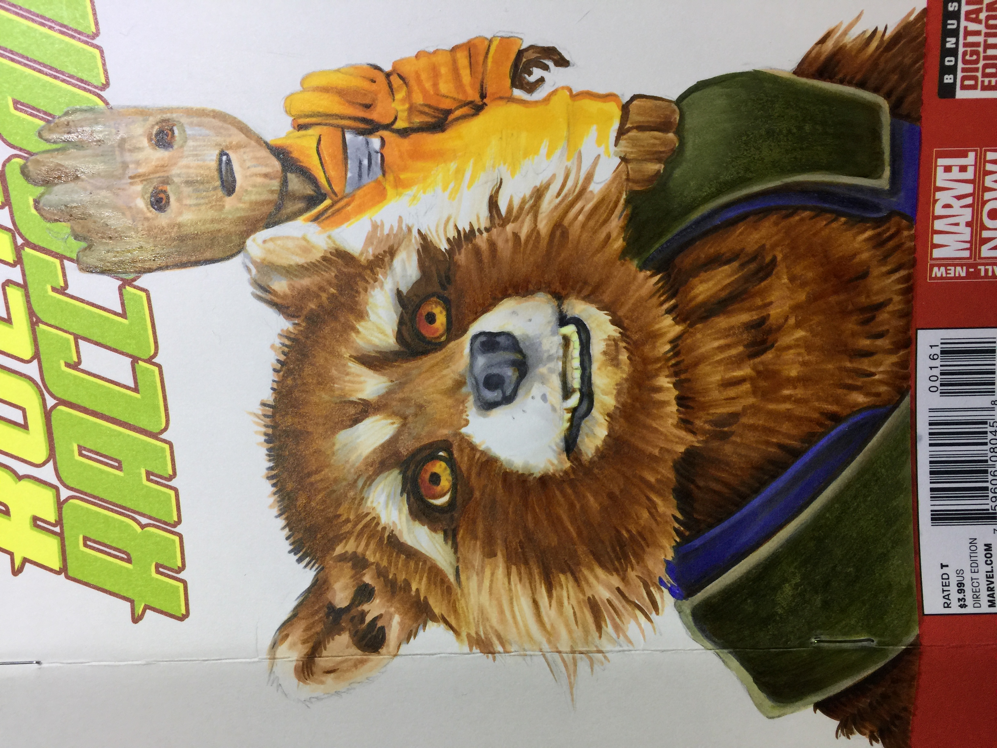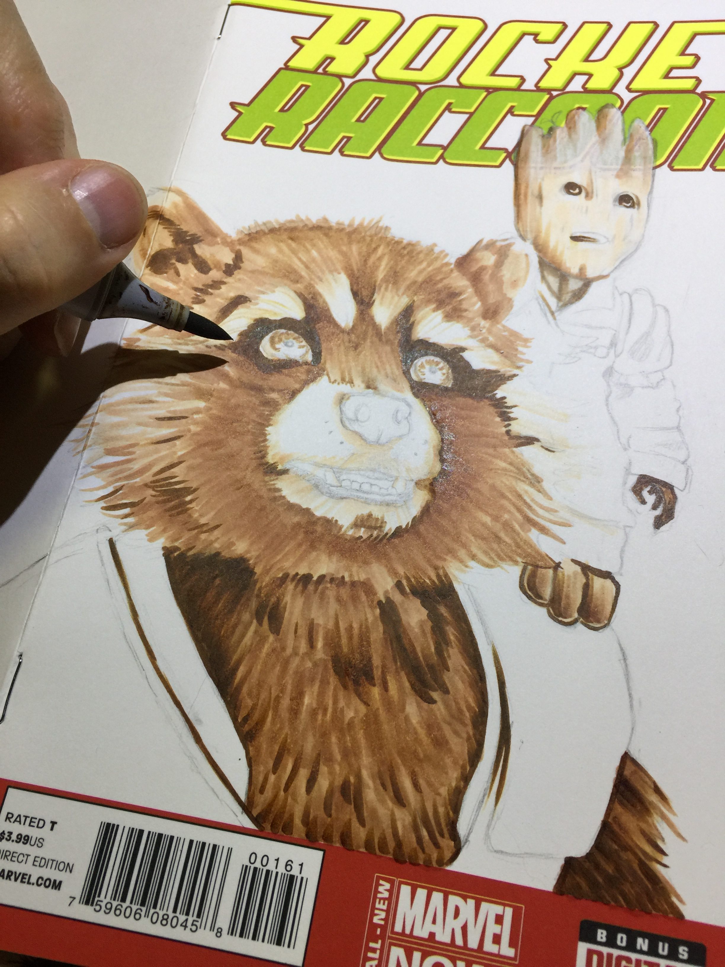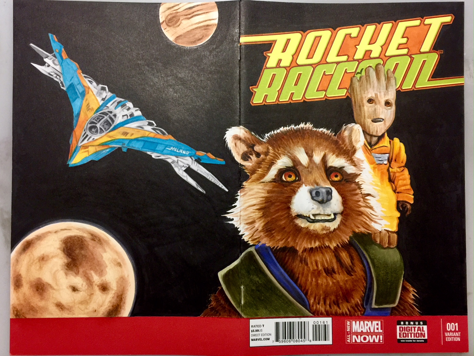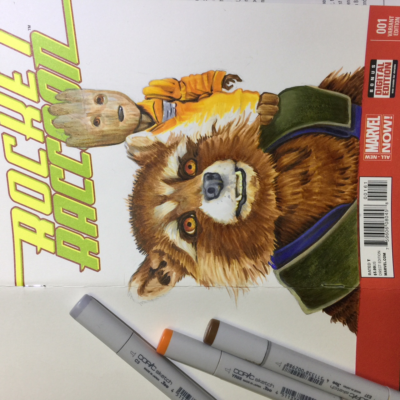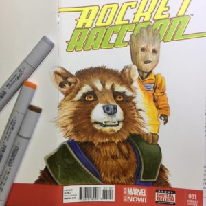 Since I did a Groot sketchcover before, I thought I’d add his partner in crime- and saving the galaxy, Rocket.