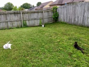 There was a great window seat up high that many of the cats liked to sleep in, or watch the dogs play just outside it in the side yard (that’s Doc and Beans above).