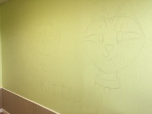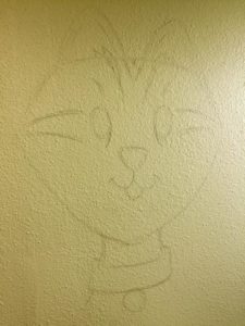 The texture on the wall actually gave it a “tooth” and helped make the cartoon cats look more fluffy when I did the shading and highlights.