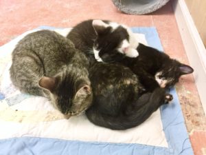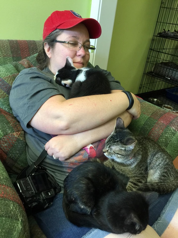 A couple really took a shine to her- Bluez, the little Lex-look-alike and a sweet little tortoise shell one (Luna). They both took long naps on her, and would make someone great lap kitties.