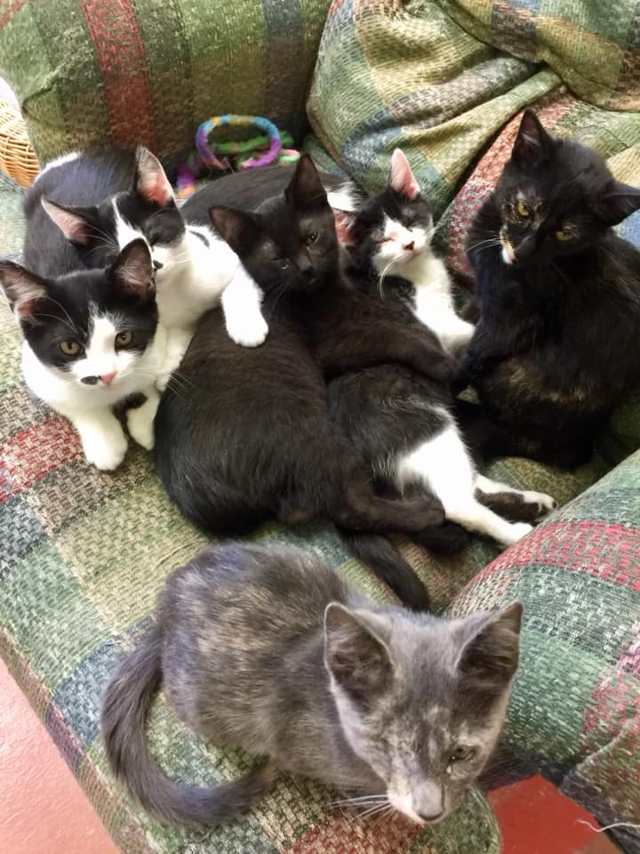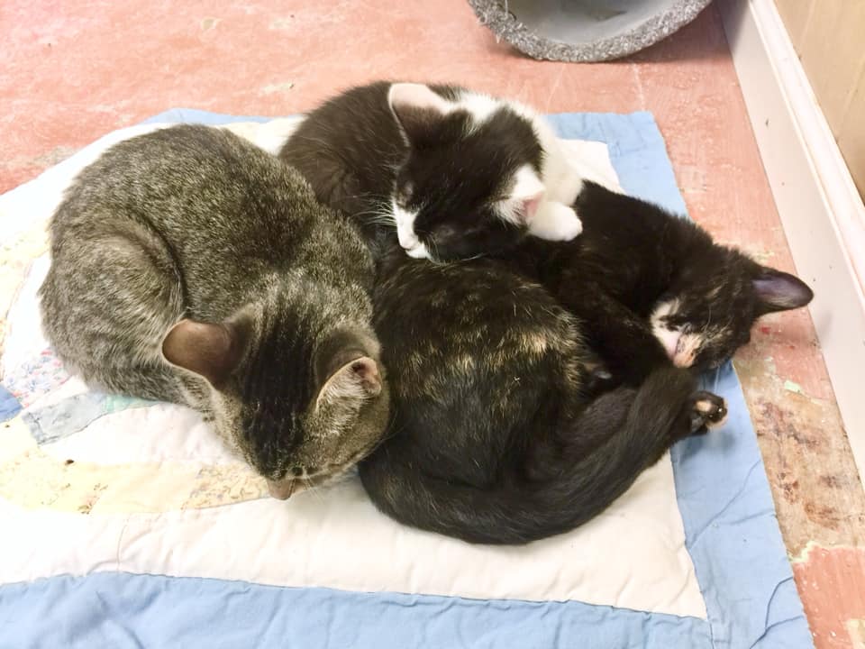 I was so surprised at how well these all got along, especially since they are from different litters. Raggedy Andy (right) is a great adoptive daddy who mothers and watches over all the kitties. He lost a tail after it got infected after being attacked in the woods. Once he is fully healed up he’s going to be a gorgeous kitty again. Look at those eyes- such a sweetie.