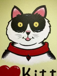 And here we are with the finished mural (I think that’s Sneezy, one of the tuxedo kitties on the left).
