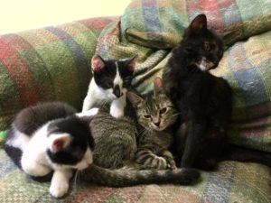 They’ve all grown into gorgeous cats and are our furry kids. Like many siblings, the don’t always get along and sort of tolerate each other. They all love spending time outside when the weather permits, and piling on our bed at night when it gets cold at night. They each have such different personalities, and I love ’em all.