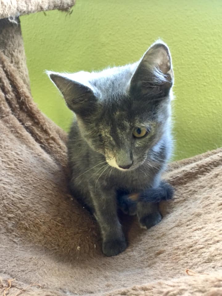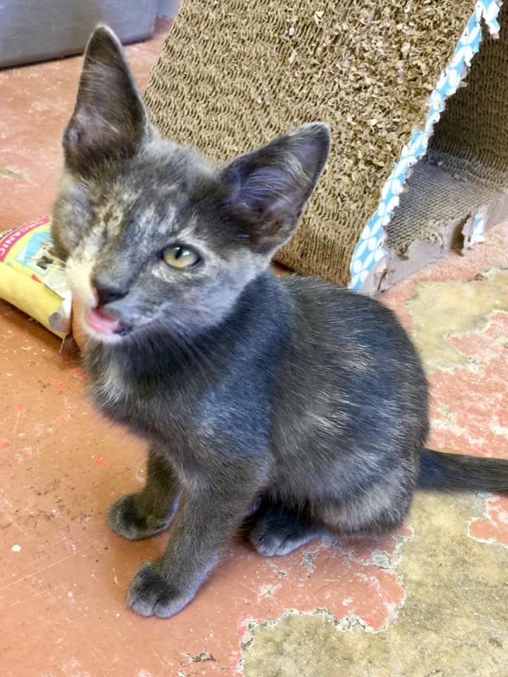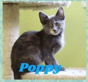 The one that stole my heart was a little one eyed grey Dilute Calico mix kitty named “Poppy“- AKA, “Popeye“. She is soooooo sweet and loved any and all attention I would give her. As they say- a very gentle soul.