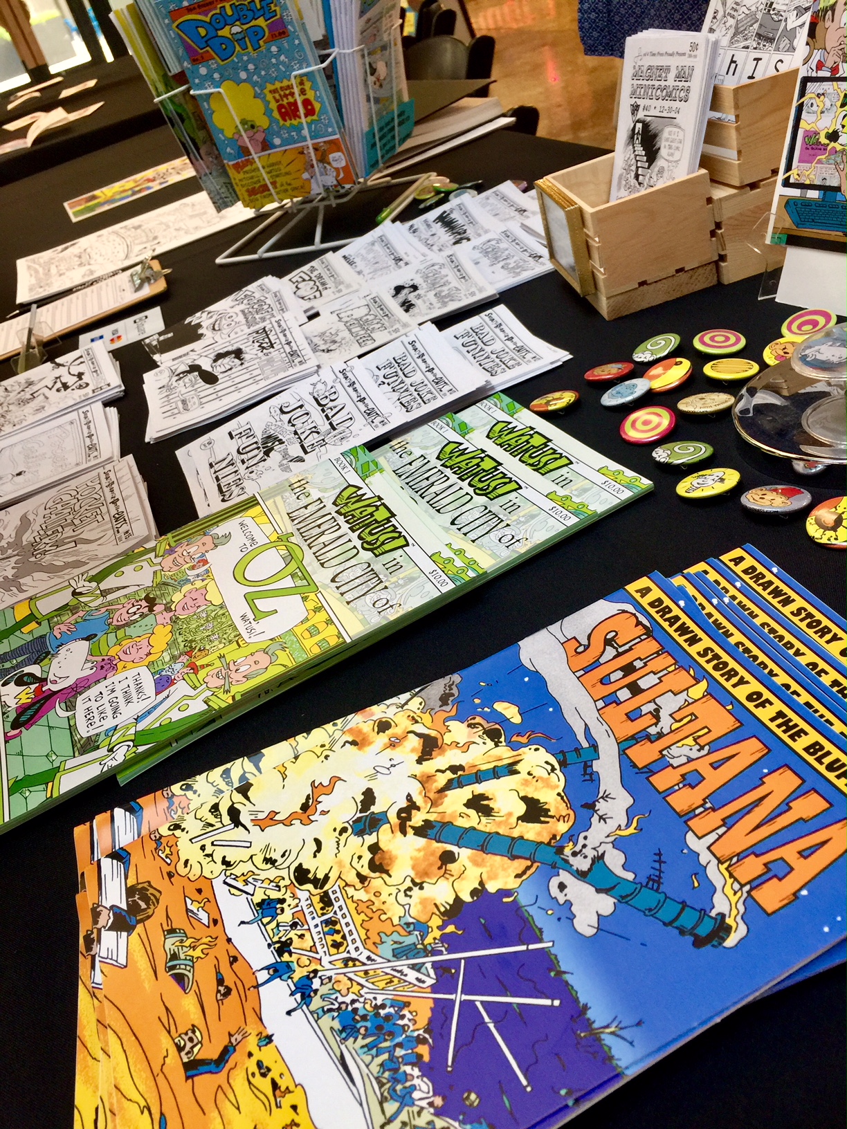 I had some mini-comics left over from Halloween so I brought those to hand out, as well as some new MSCA buttons.