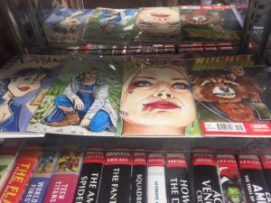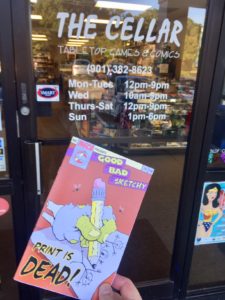 Once the zines were completed we divided them up and took them out to each of the three of the comic shops here in town- Comics & Collectibles, The Cellar, and 901 Comics. Dale also took some down to the Monster Market shop on Main Street.