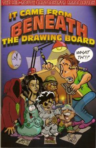 The group has published two previous anthology comics- “Beneath The Drawing Board” and “Overdrawn And Underwritten“, which I was a contributing artist to. This was the first “zine” (short for “magazine“) comic book we have done.