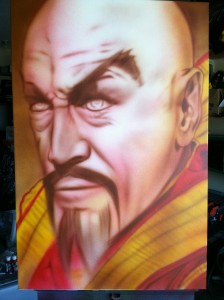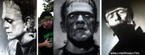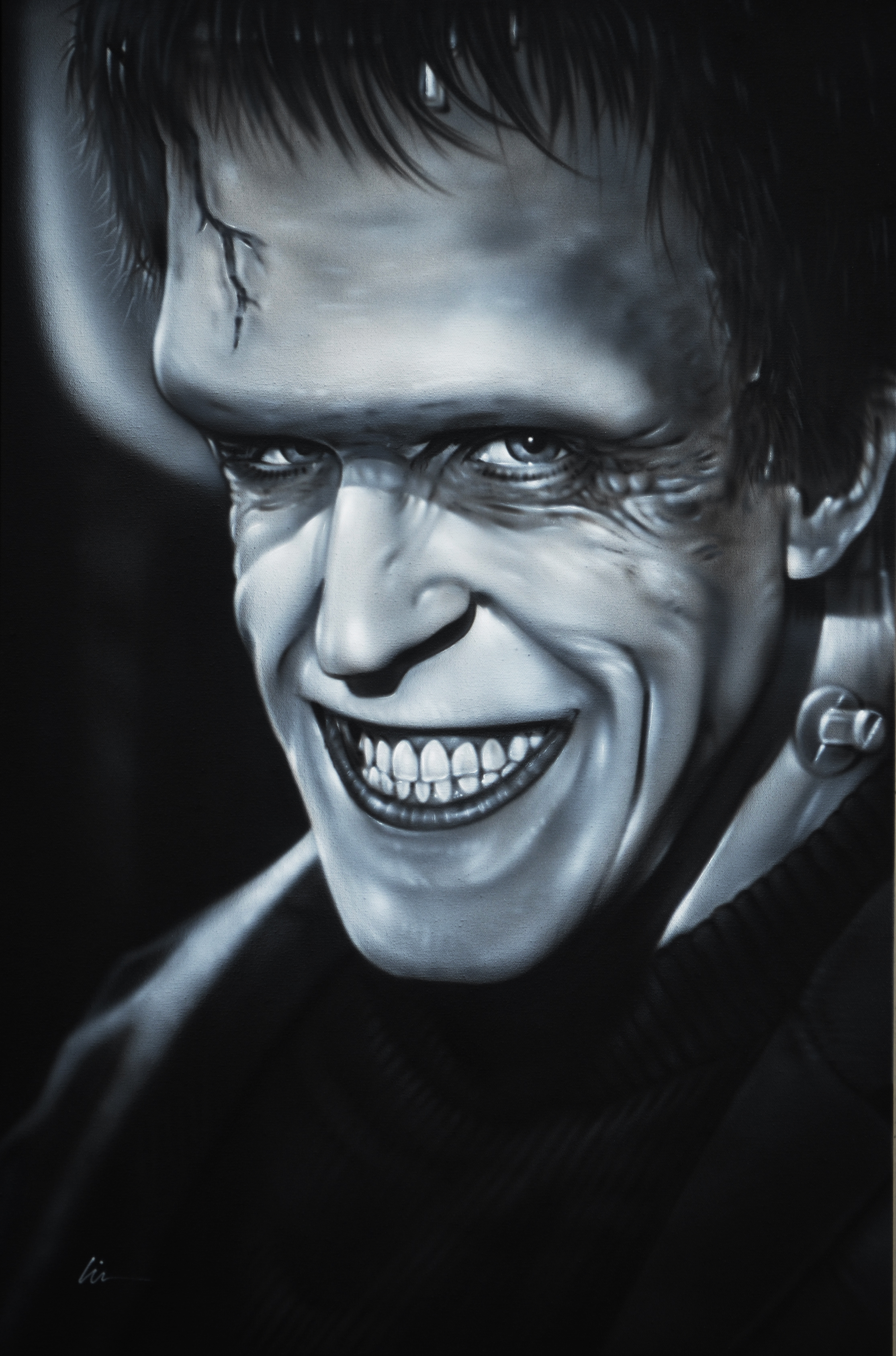 For many of my Monsterpieces I use an opaque projector. I bought it about 30 years or more ago while airbrushing at a t-shirt shop in a mall here. I had a lot of people wanting portraits and their vehicles on shirts for Christmas and I needed to be more exact and quicker with my painting. Faster + accuracy = more $$$. The projector allowed me to get my proportions accurate, my practice with an airbrush and understanding photography helped me make the paintings look more realistic.