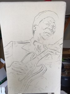 I really only use a projector or lightbox to help crop/position the design on a canvas or sketchcover. I usually just quickly sketch the basic outlines and positioning, and then freehand the rest. It saves time and keeps things better composed. Depending on the photo I’m using I may be able to get details to show up, other times I’m just going to get a rough outline and maybe a couple reference points with a pencil and/or Sharpie.