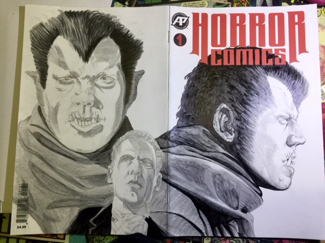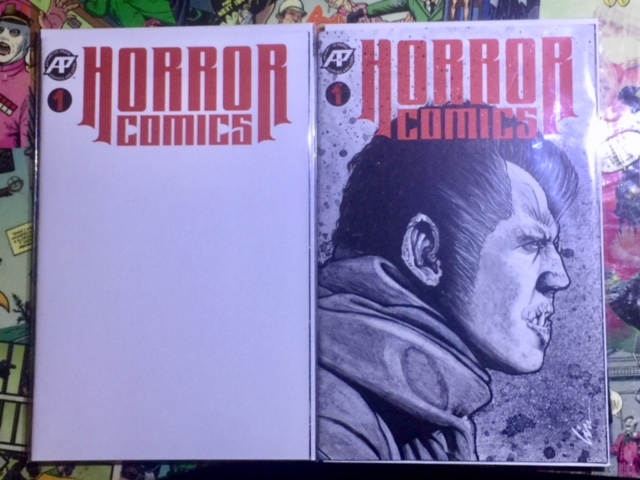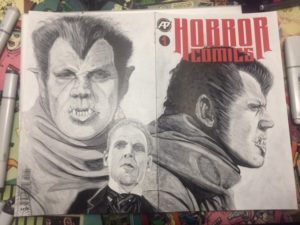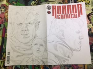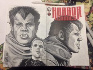 For the first time this weekend I worked on a horror sketchcover- I know, right..?! I don’t remember if I ordered these Horror Comics through my local comic shop, picked them up at a con, or ordered them with some other sketchcovers. I know I didn’t notice they were from Antarctic Press, because that may have kept me from buying them. Didn’t have a good experience with the publisher back when I was working with some friends on Stargods (see also Stargodz) and American Woman. Long story, I can tell ya later about it if you’d like.