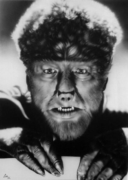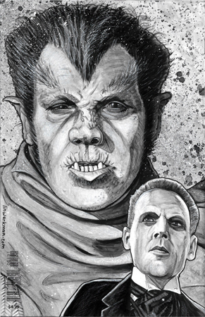 As you probably know by now I’m a huge monster fan- especially the old B/W Universal horror movies. I’ve always loved this make-up design, which was done by the legendary Jack Pierce– who did many of the early Universal monster make-ups such as Frankenstein, The Wolfman, and The Mummy. It’s one of my all time favorite classic looking movie werewolves. Something I didn’t realize until drawing this sketchcover was that Werewolf Of London predates The Wolfman by 6 years (1935/1941) and is considered to be the first mainstream werewolf film.