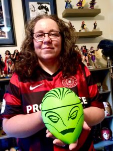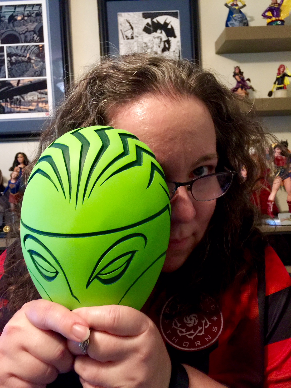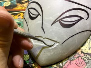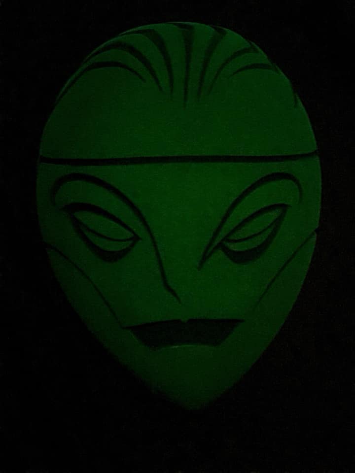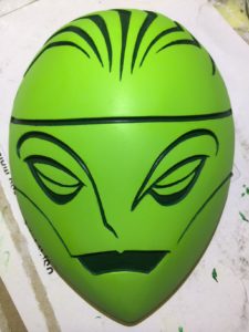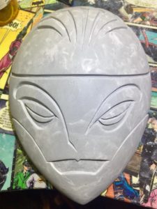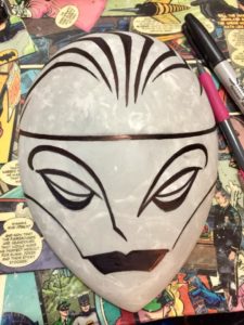 Since we’re all having to mask up these days, I thought I’d show you the resin mask I made for my wife Nicki. It was one of my art projects while staying home from work due to the pandemic. I don’t recommend wearing this mask, but it looks cool sitting next to a computer or hanging on a wall in a Fangirl Room like my wife’s.
