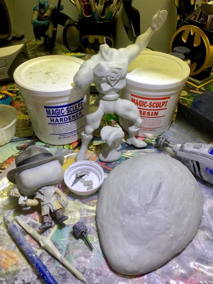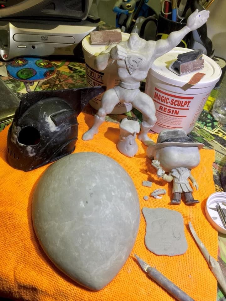 I recently finished a custom Rorschach Funko POP! figure that you can see by clicking here. I also started work on a Superman sculpt and a Rocketeer mini-helmet kit (shown above).
