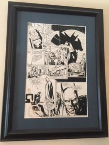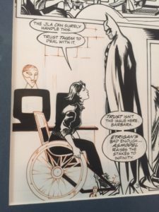 Speaking of my wife and original art, when we first started dating I showed her this Batman/Oracle page I owned that was drawn by our local artist friend Dean Zachary. She really dug it and said that if we were ever married she got it. Well, we did, and she got possession of that page along with some of my collectibles on upcoming birthdays, anniversaries, and Christmas. She later said I was trying to expand out of my Batcave studio and take over her room down the hall. Completely untrue- I knew how much she loved the women of DC Comics, and well- my Batcave is only 10’x10′, so…well, they had to go somewhere.
