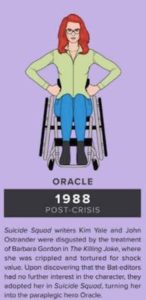 So they did something about it, and other writers like Chuck Dixon and Gail Simone continued to tell Barbara’s story as well. She had this new life in comics as Oracle– an online tech wizard and strategist, who has become a real role model for many in our world.