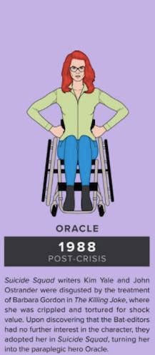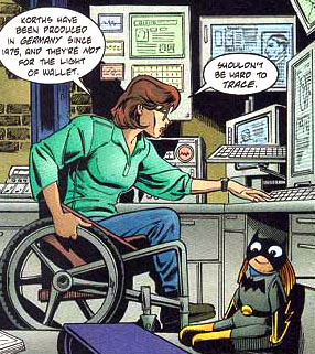Barbara Gordon was originally Batgirl, but due to a situation caused by a certain story in a 1988 graphic novel by Alan Moore and Brian Bolland (that we tend not to speak of in this house) she became paralyzed after (spoilers) being shot and sexually assault by the Joker.