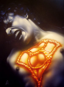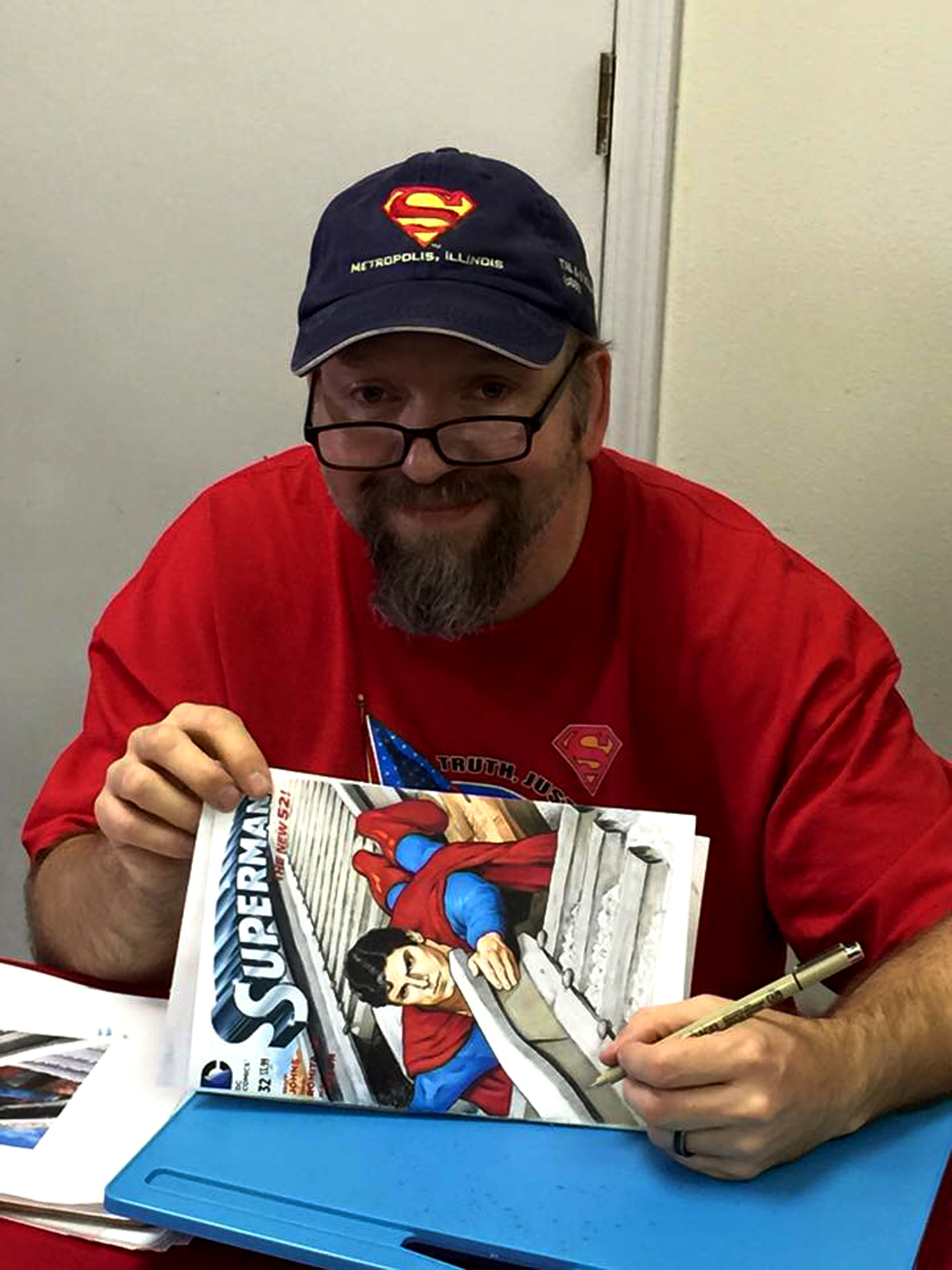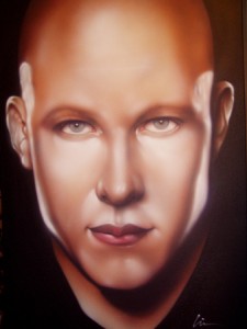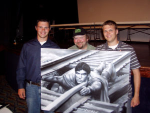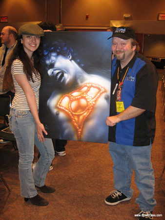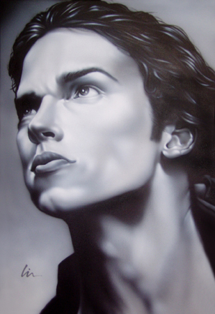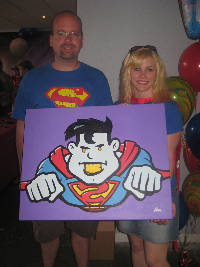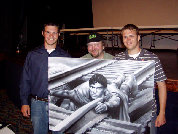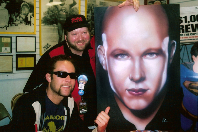 With Tess Fowler at the Phoenix Comic Con art auction- Tom Welling/Clark Kent “Smallville”, airbrushed.