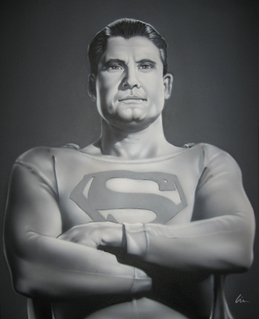 George Reeves/Superman in Metropolis- B/W airbrushed.