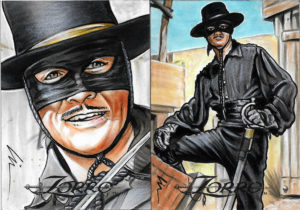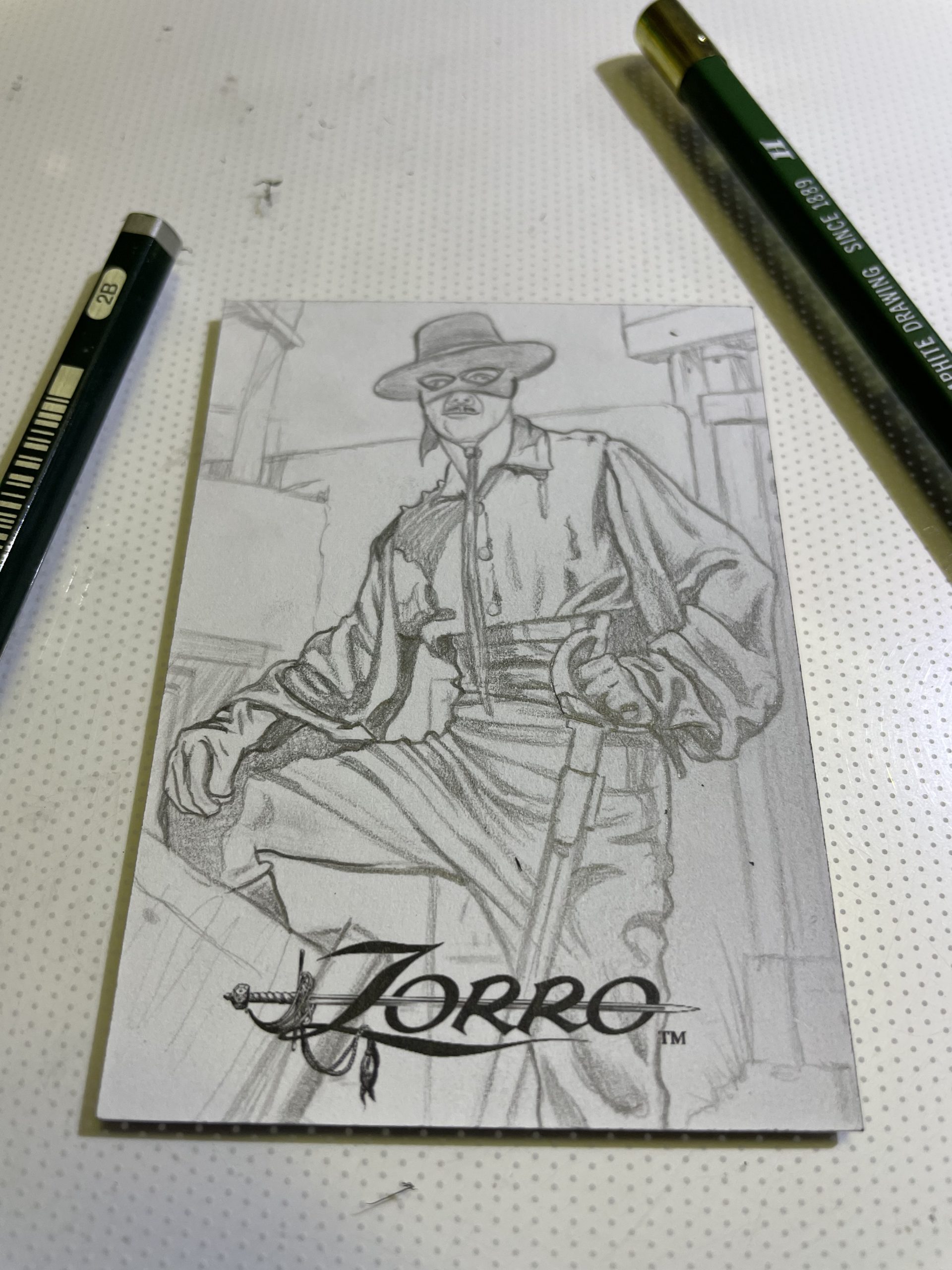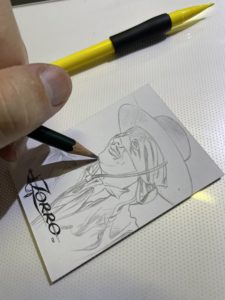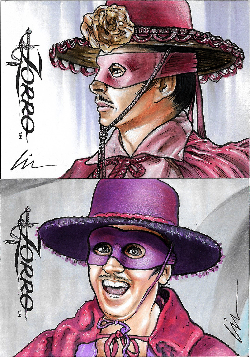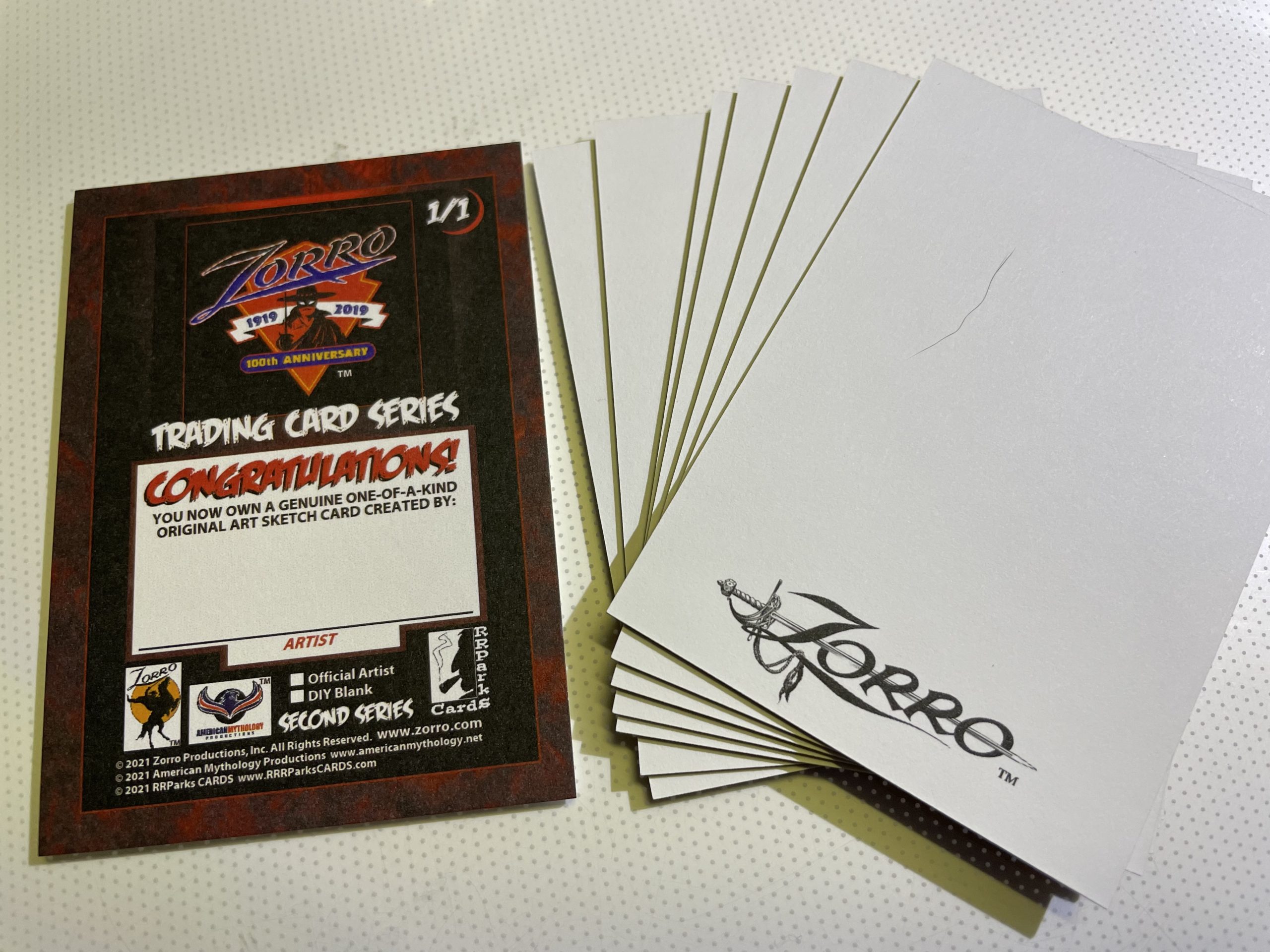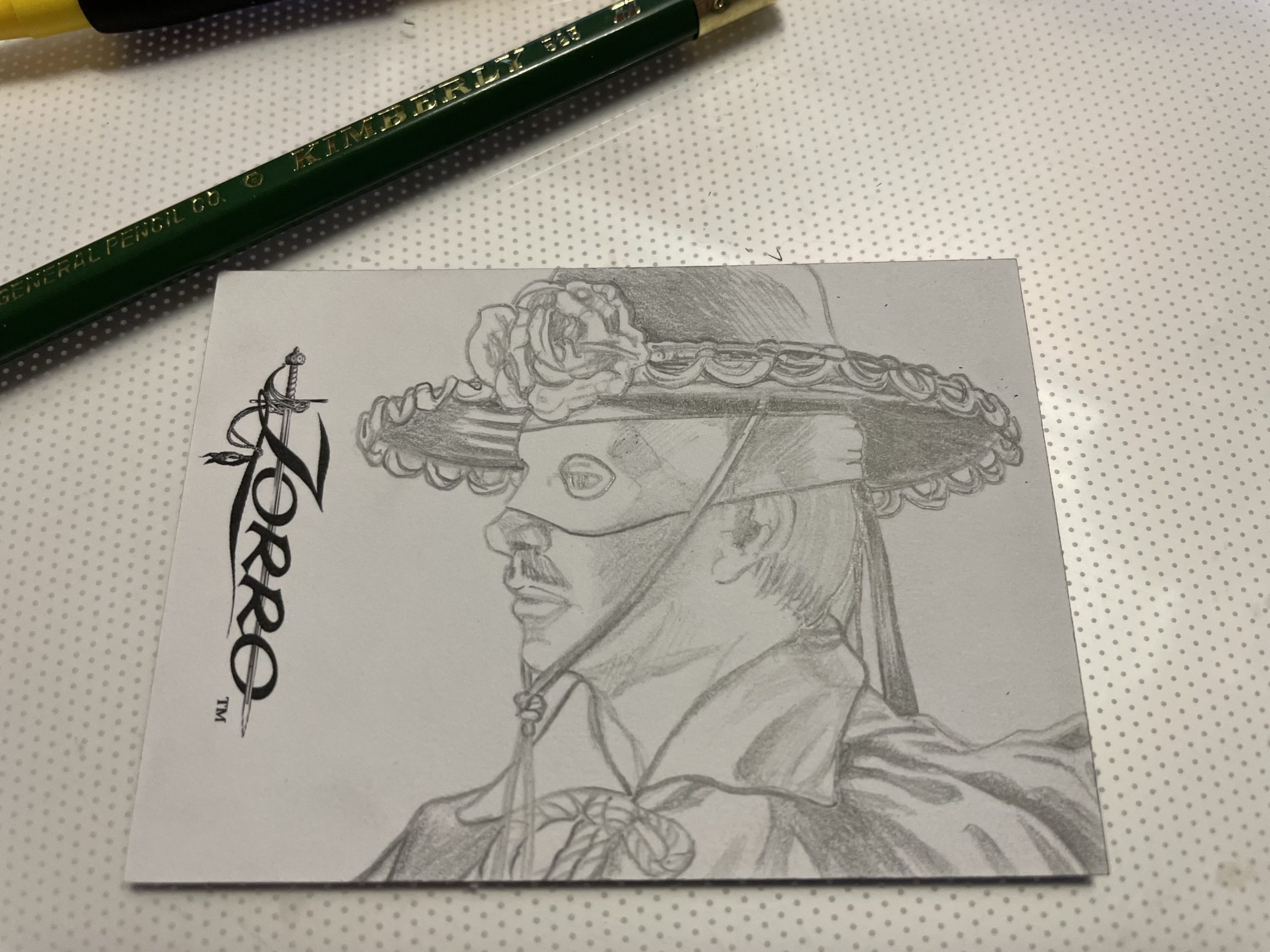 I’ve posted about the sketchcards I’ve done for RRParks Cards, such as the ones done for their Ultraman, Manos, MST3K, and Halloween Trick Or Treat trading card sets. I haven’t posted the Zorro (series 2) sketchcards I did for them, but here they are- and how I created them.