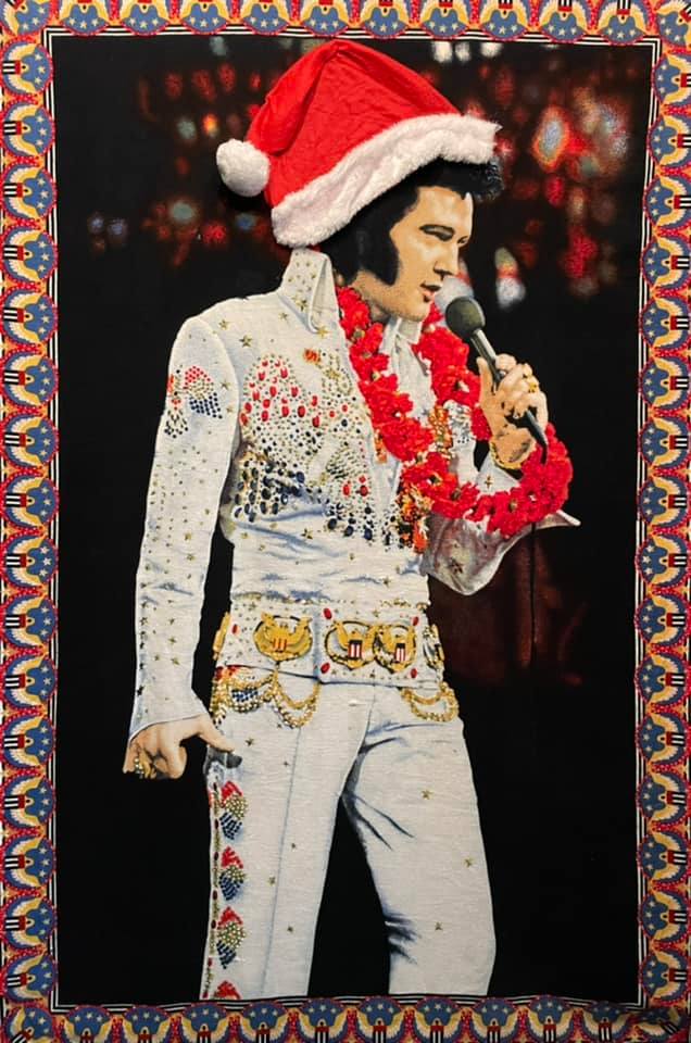The tree display, and the shop’s Elvis tapestry.