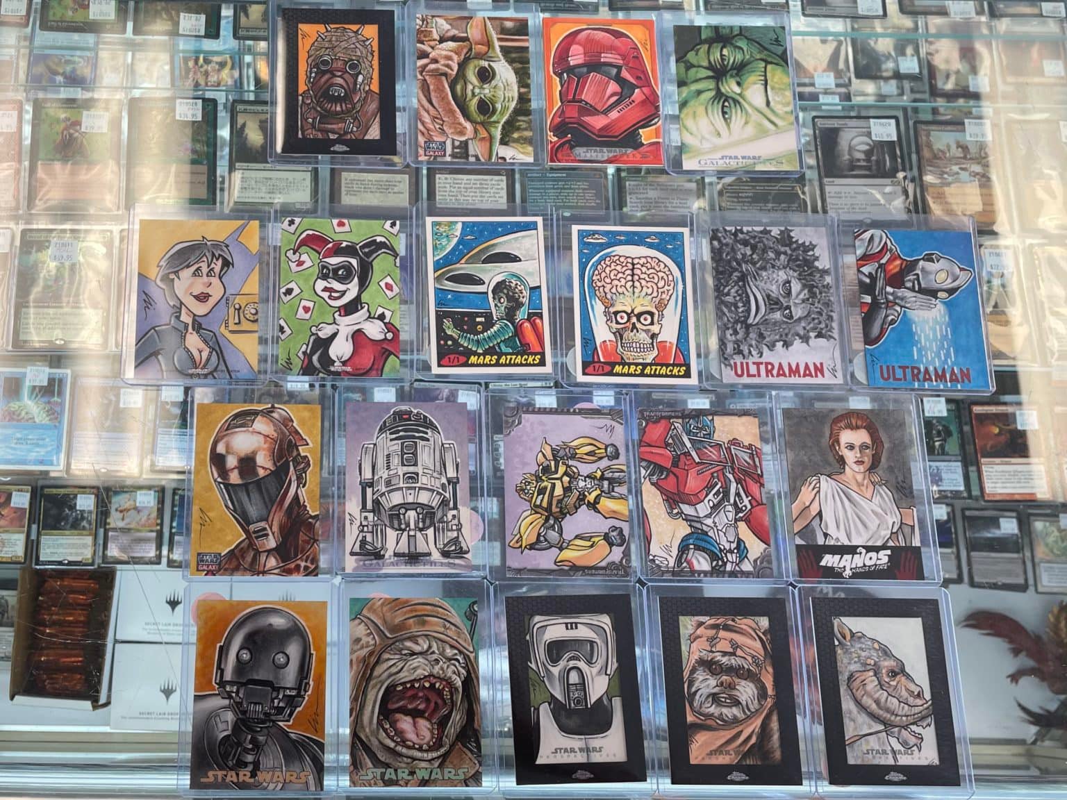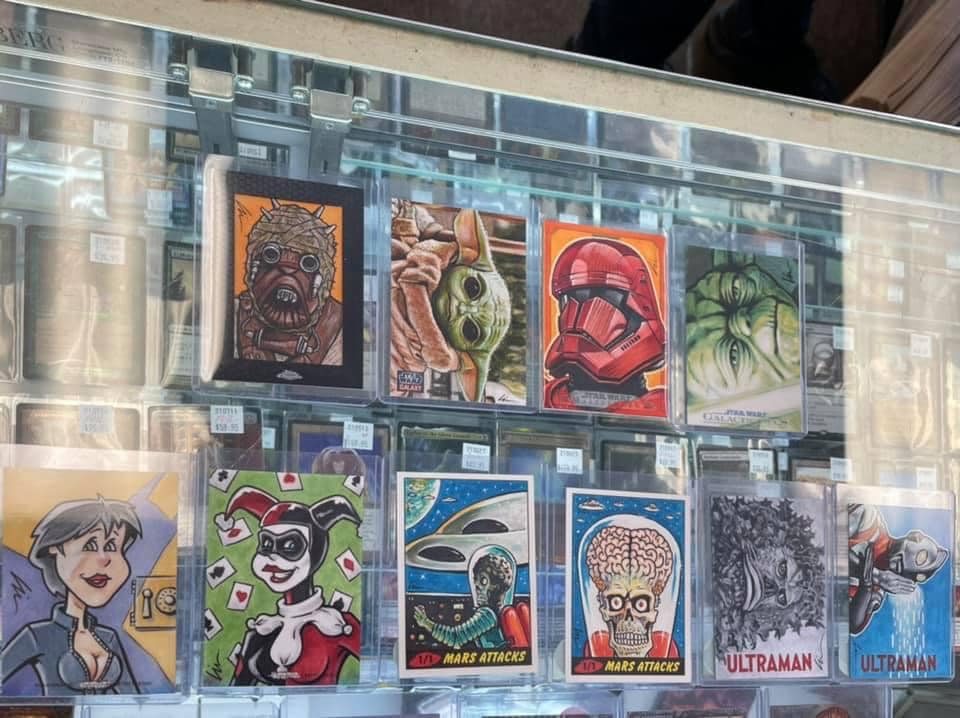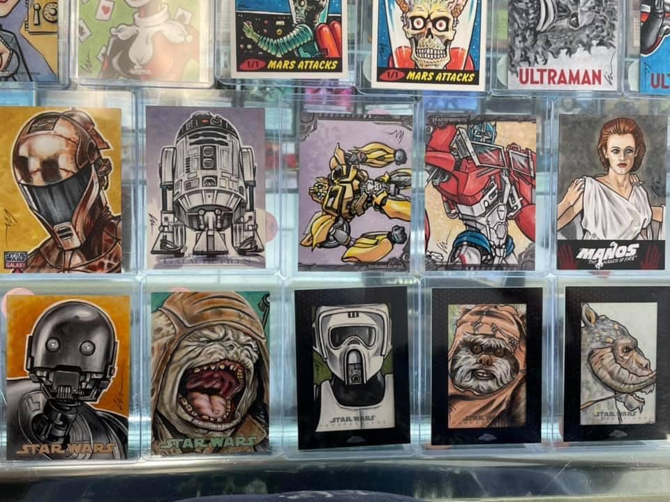 There are both official artist returns cards from companies like Topps, Breygent, Cryptozoic, and RRParks Cards and personal sketch cards drawn on my own custom blanks- with more to come after the holidays.