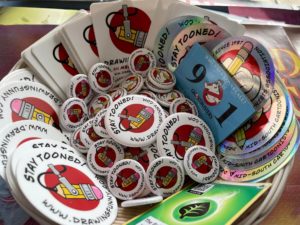 Oh, and if you stop by in person be sure to snag some free Drawing Funny podcast swag.