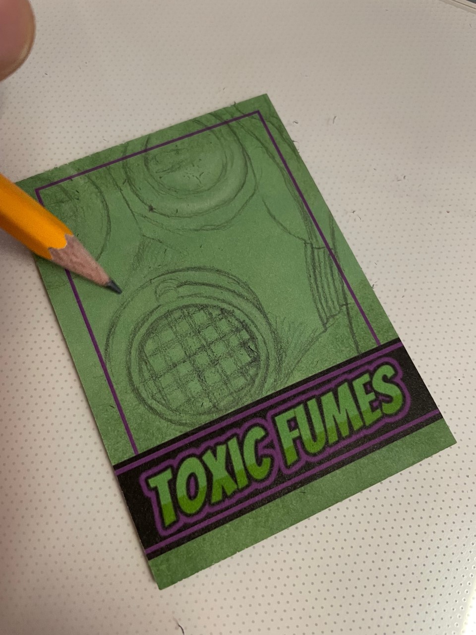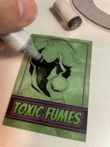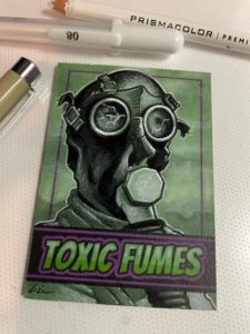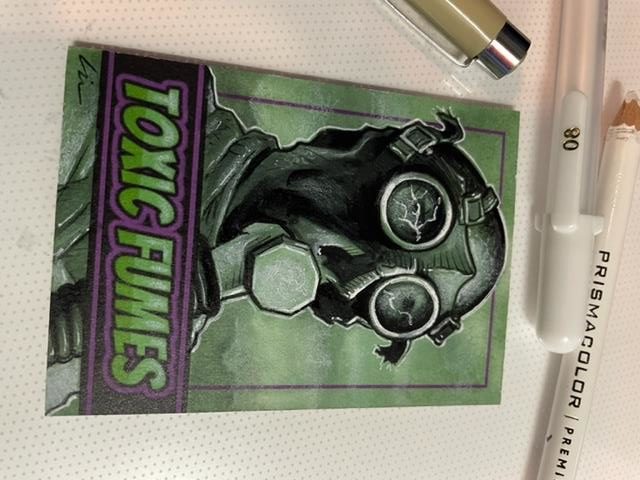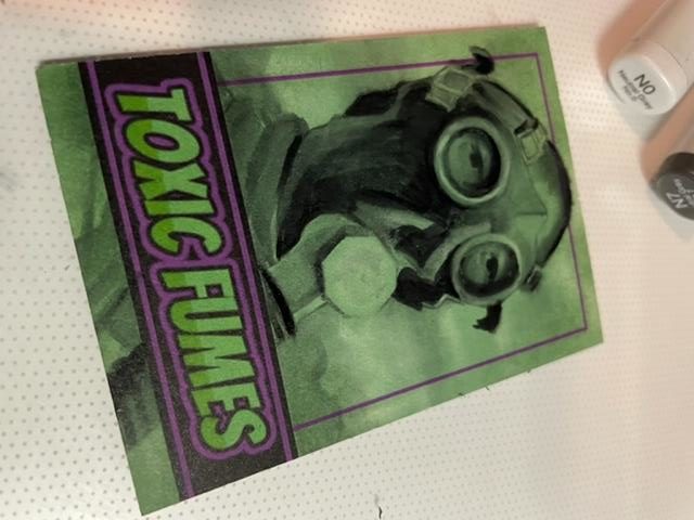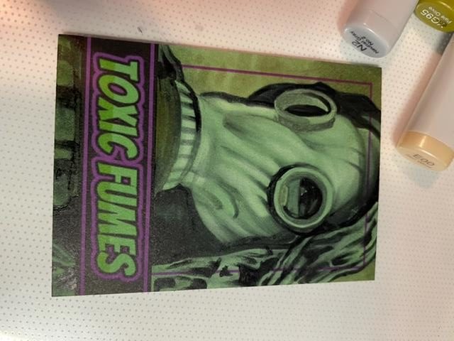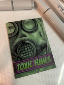 Oh, and since we’re all about green in this blog post, I also did a few cards this summer for a “Toxic Fumes” sketchcard set.
