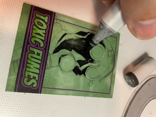 Had to be careful not to damage the card’s surface for when I started in with my Copics.