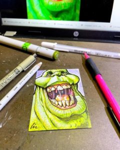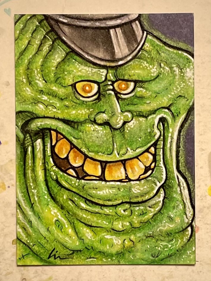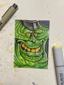 I also drew a Slimer (from GB2) sketchcard for the Gabe’s Cave set. I did a total of 15 cards for them to giveaway.
