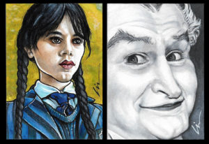In time for Halloween will be a card series called NOSFERATU SERIES TWO — being published by Attic Cards, RJF, Leg Day Cards and RRParksCARDS (4 publishers teaming up to produce a single card series)…this series celebrates the 100th Anniversary of the ICONIC vampire movie. LOADS of bells and whistles for this series including a 9-portrait subset with Claudiu Macarie Art (of RRParksCARDS), 9-card ART subset featuring 9 different sketch card artists, hilarious ‘Grossferatu’ parody set by Lindsey Greyling (Leg Day Cards), a super fun cosplay subset created by Richard Fowlks (RJF) and a super special ACRYLIC ‘laser cut’ set by Jeremy Faulkenburg (Attic Cards). The project includes brand new sketch cards, engraved cards, a special surprise item by Steven Vance of MST3K DVD fame and more fun stuff.
