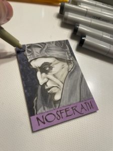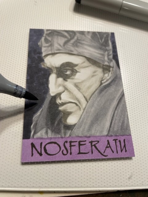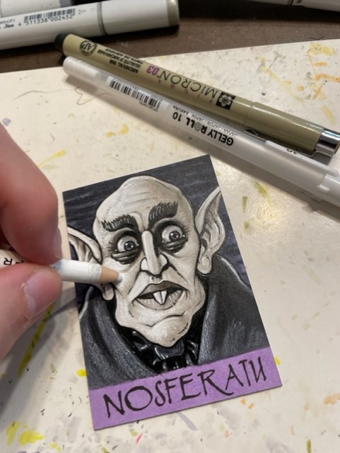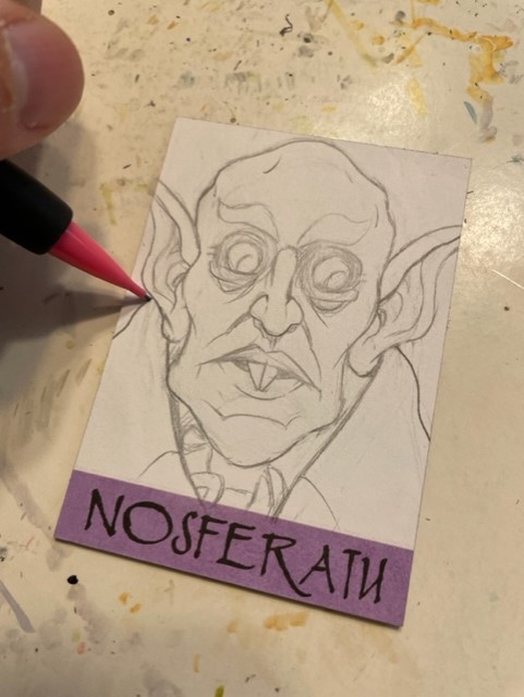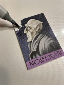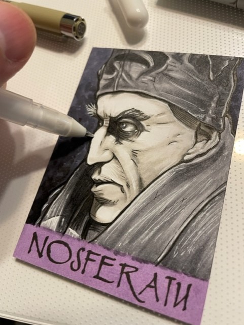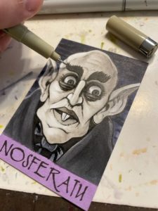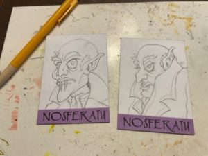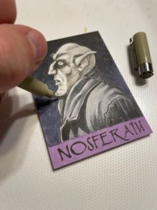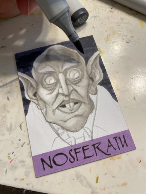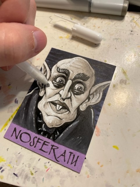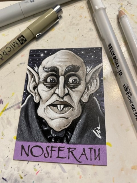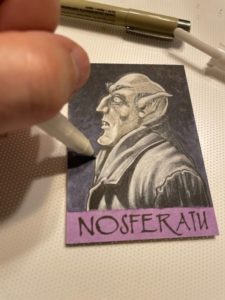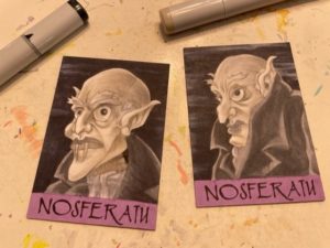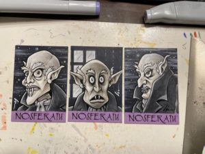 I really enjoyed drawing cards for this set, and hope to do a few airbrushed Nosferatu Monsterpiece paintings- hopefully for next Halloween. It’s been too long since I’ve painted ANYTHING!